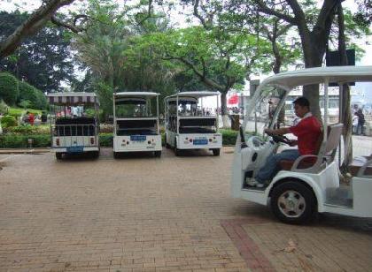 この方がはるかに早く快適だ。島の中はガソリン乗用車はなくすべて電動の 自動車で1.8平方kmの小島のなかの
