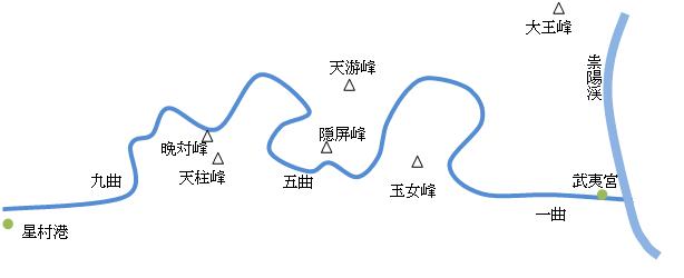 「三三」は青く澄み切った九曲渓の川の流れ、「六六」は両岸に並ぶ武夷三十六峰、「七十二」は七十二ヶ所の岩壁につくられた穴、