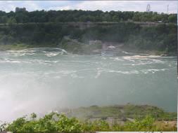 カナダ滝の水しぶきが、まるで水蒸気のようでした。下の渦の中を霧の乙女号は滝のほぼ真下まで進みます。