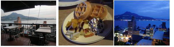カフェでお勧めのワッフルを食しながら夜の帳が下りてくる景色と時間を楽しむ。