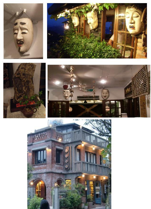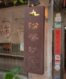 九份を代表する茶芸館はアーティスト洪志勝氏が経営する九份茶房(坊)である。建物は石造と木造との混合構造。素朴な外観で、前方が一階、後方が二階となっている。屋内にはいって目に付くのは船底天井。日本風の作りだという。