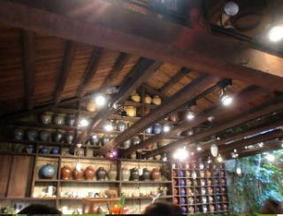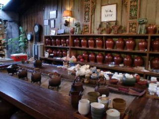 建物の奥に入り階下に下ると磁器の展示場になっている。オーナーや関係者の作品が展示されているようだ。ふと感じて「土は九份のものを使うのですか」と尋ねると、「新竹」の南付近の土を使うのだという。「新竹」は台北から西北1時間くらいの所だと記憶する。九份からは金のみならず銀、銅を多く産出するところから焼き物の土や釉薬に使っても面白いのではないかと思ったとき、「ああ、此処は陶器の文化ではなかったんだ」と考え直した。