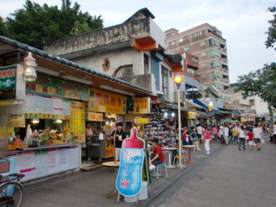 世界の大都市は大河の畔に生まれるといわれるが台北市の河は淡水河である。その淡水河の河口には淡水という美しい町がある。台北から40分「捷運淡水線」の終点である。駅前は広場になっていてストリートパーフォーマンスが盛んに行われている。駅前から河口の北西に流れる淡水河に平行して、中正路、その外側の山側に中山路が続く。孫文と蒋介石が並んで走るという格好である。河の岸は環河道路だ。